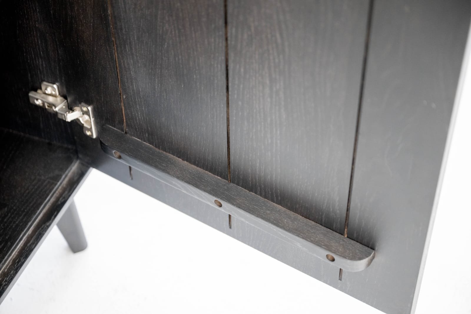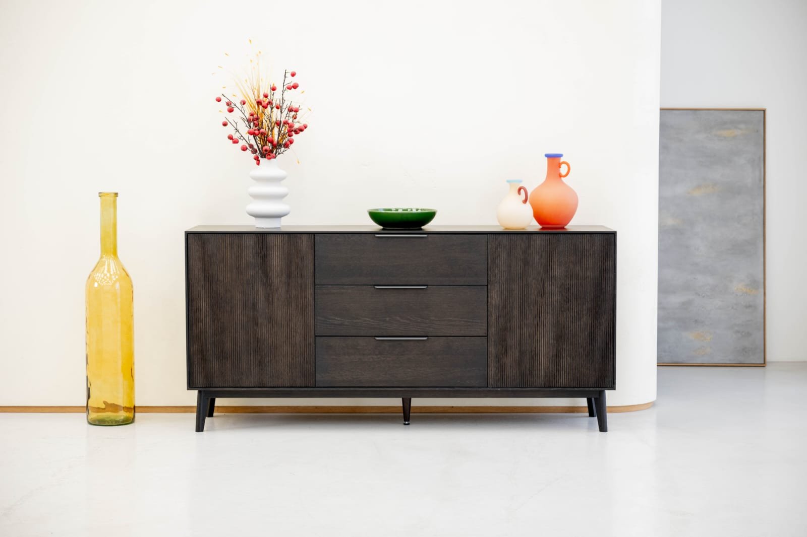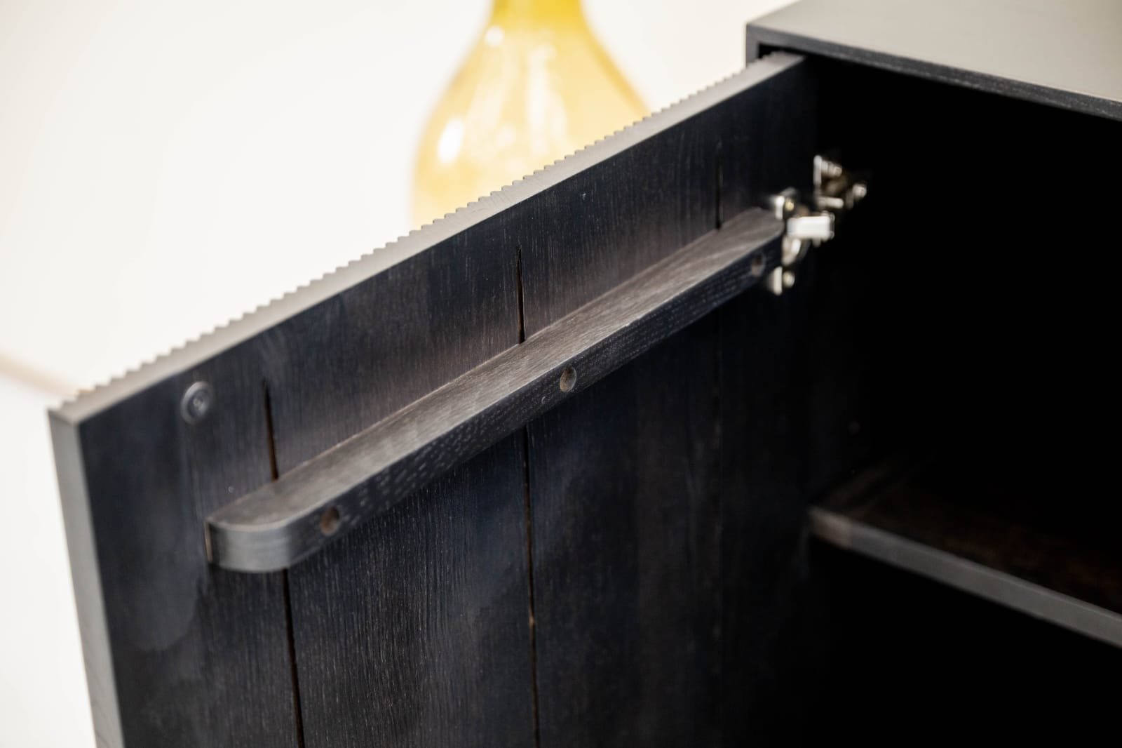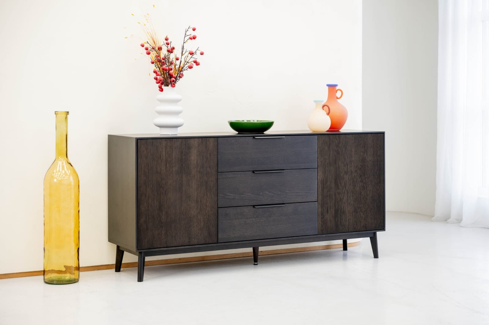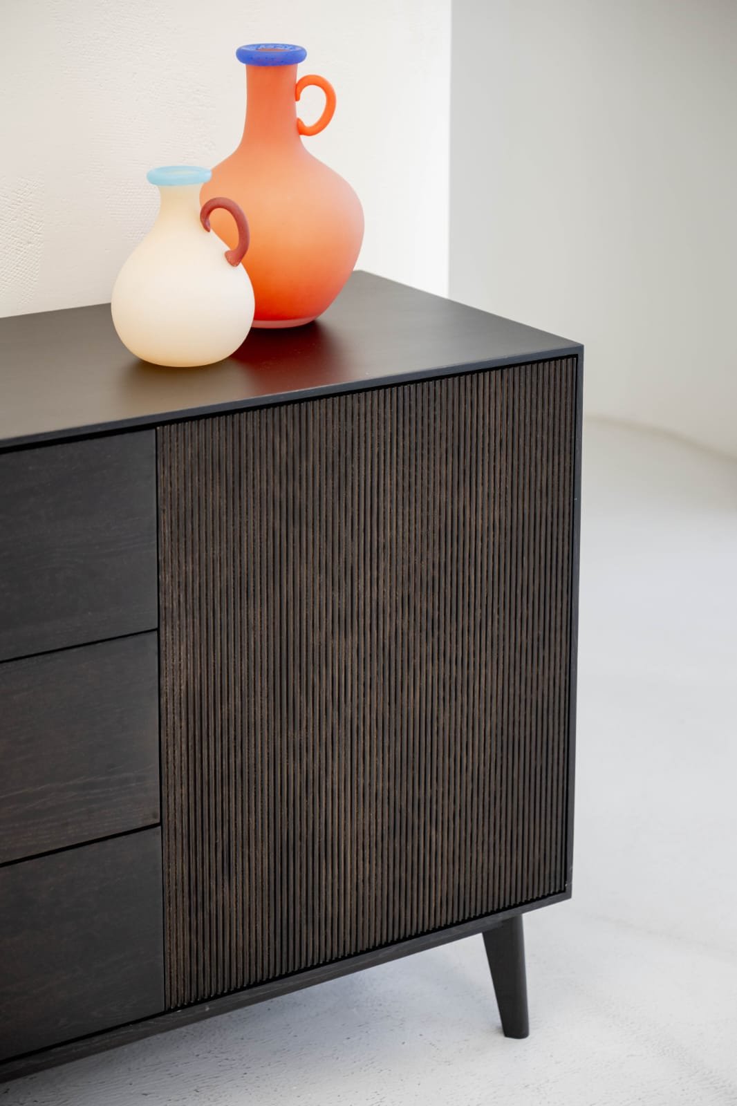 ALTO komoda – tai modernus baldas, pagamintas iš 100% masyvaus ąžuolo, užtikrinančio ilgaamžiškumą ir išskirtinę estetiką. Komoda turi tris erdvius stalčius bei dvi dureles su vidinėmis lentynomis, todėl lengvai pasirūpinsite tvarka ir daiktų organizavimu. Juodas, subtiliai išryškintas ąžuolo raštas suteikia baldui prabangos, o minimalistinės rankenėlės – šiuolaikiškumo.