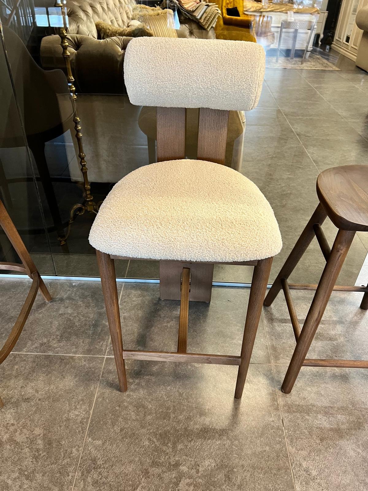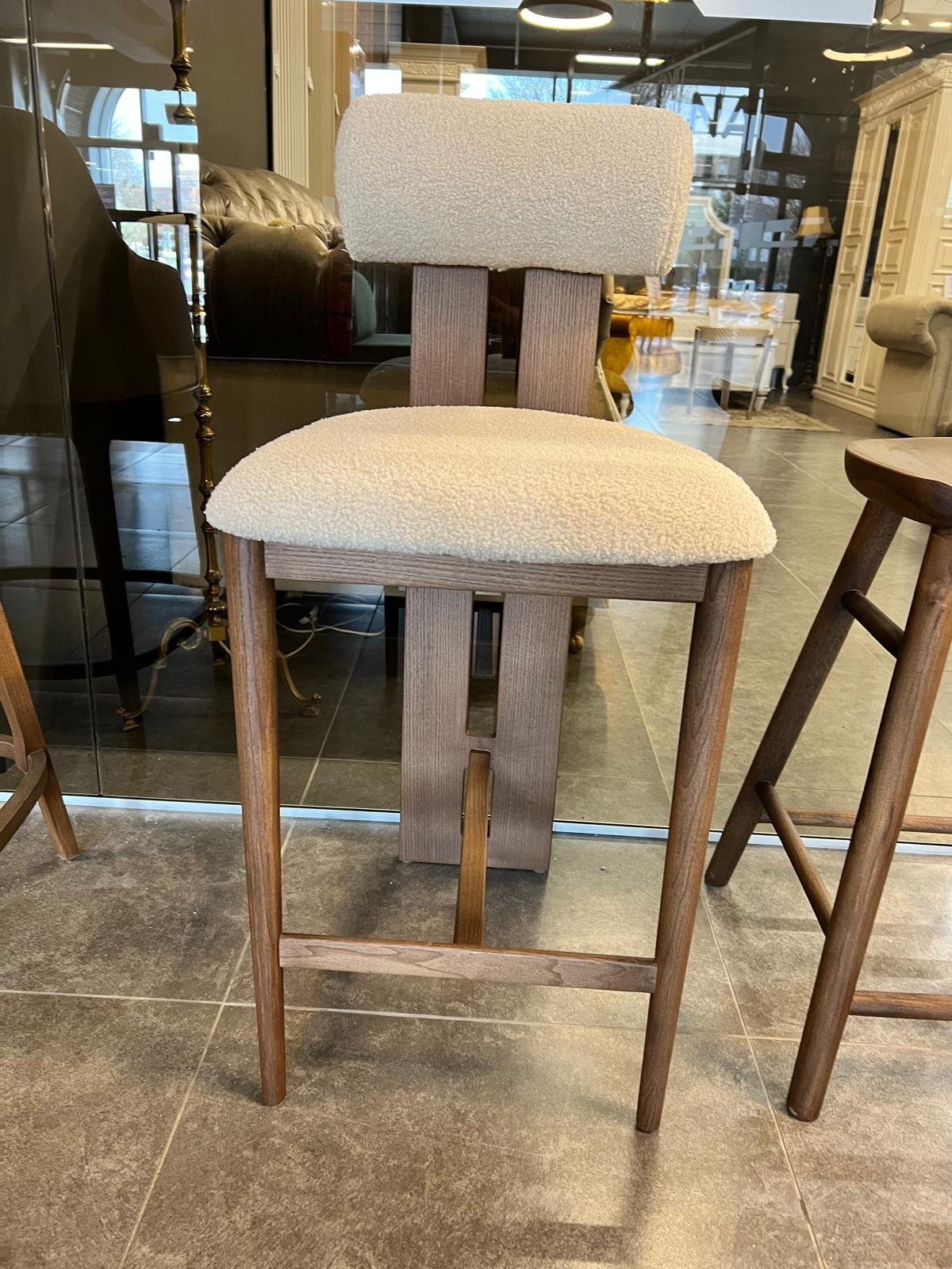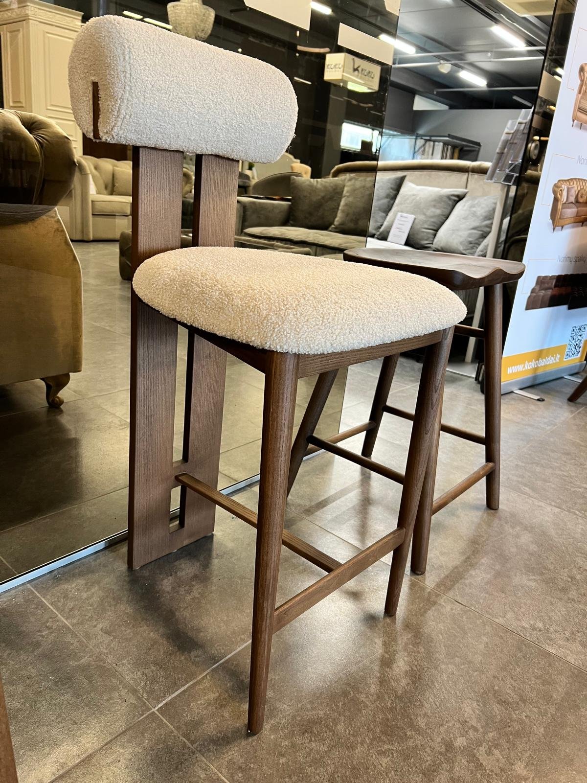 Ši pusbario kėdė iš uosio medžio – tai subtilus modernios estetikos ir natūralių medžiagų derinys. Tvirta medinė konstrukcija, švelniai apmušta sėdimoji dalis ir ergonomiška nugarėlė sukuria patogų, vizualiai lengvą, tačiau solidų baldą tiek namų, tiek komercinėms erdvėms.