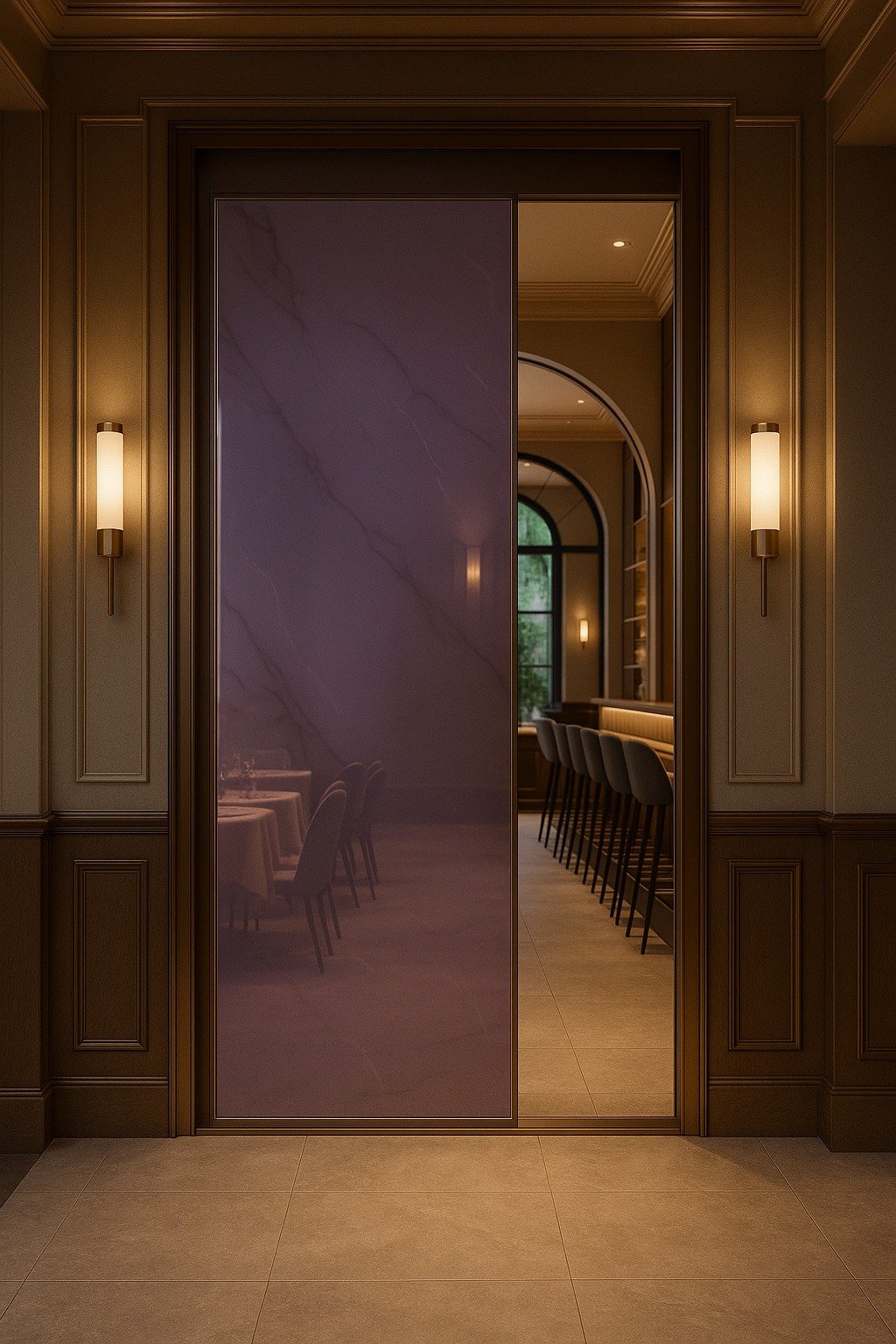 Restoranų nišos, barų sienos, liftų zonos, grožio salonų interjerai – visur, kur norima sukurti šviesos ir erdvės žaismą be klasikinio veidrodžio šalčio. Taip pat puikiai atrodo ir moderniuose miegamuosiuose ar prieškambariuose.