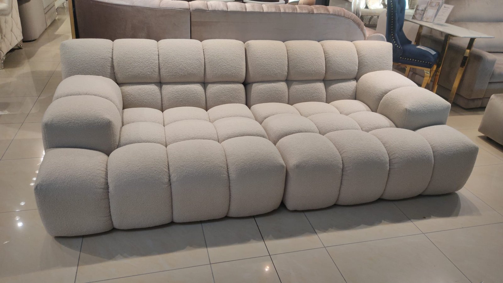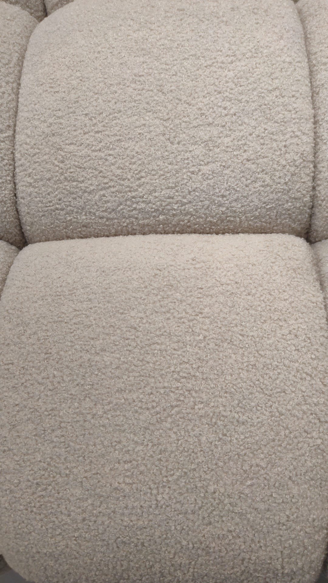 LEON – tai šiuolaikiškas komforto simbolis, sukurtas tiems, kurie vertina minkštumą, formų estetiką ir laisvę kurti savo erdvę. Ši modulinė sofa išsiskiria išraiškingu „bouclé“ audiniu, apvalintomis formomis ir giliu, kviečiančiu prisėsti siluetu. Kiekvienas modulis – tarsi atskiras architektūrinis elementas, leidžiantis sukurti tiek kompaktišką sofą, tiek įspūdingą U ar L formos kompoziciją.