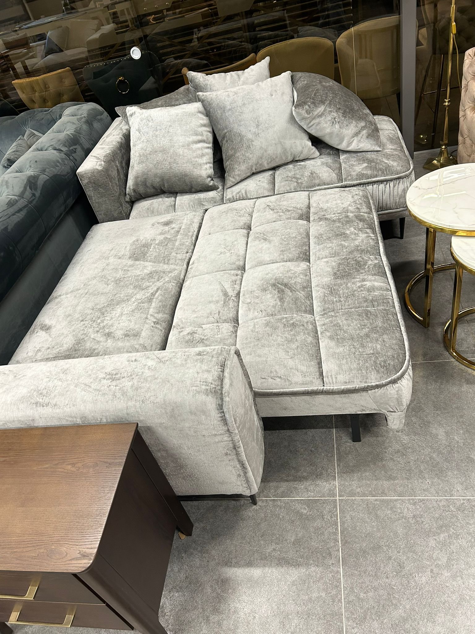 Minkštas kampas su miegama funkcija parduodamas iš ekspozicijos.