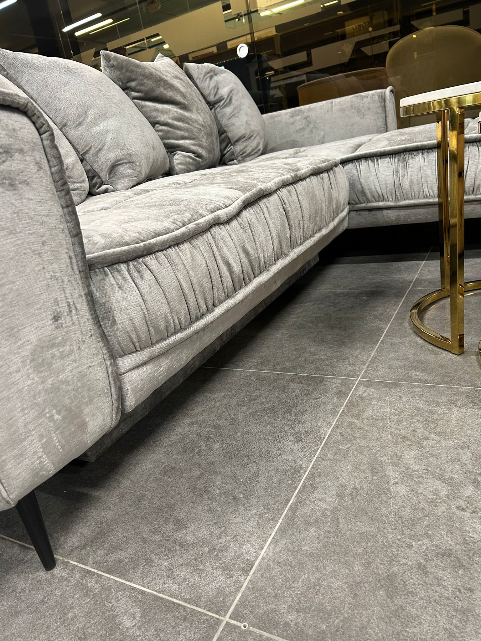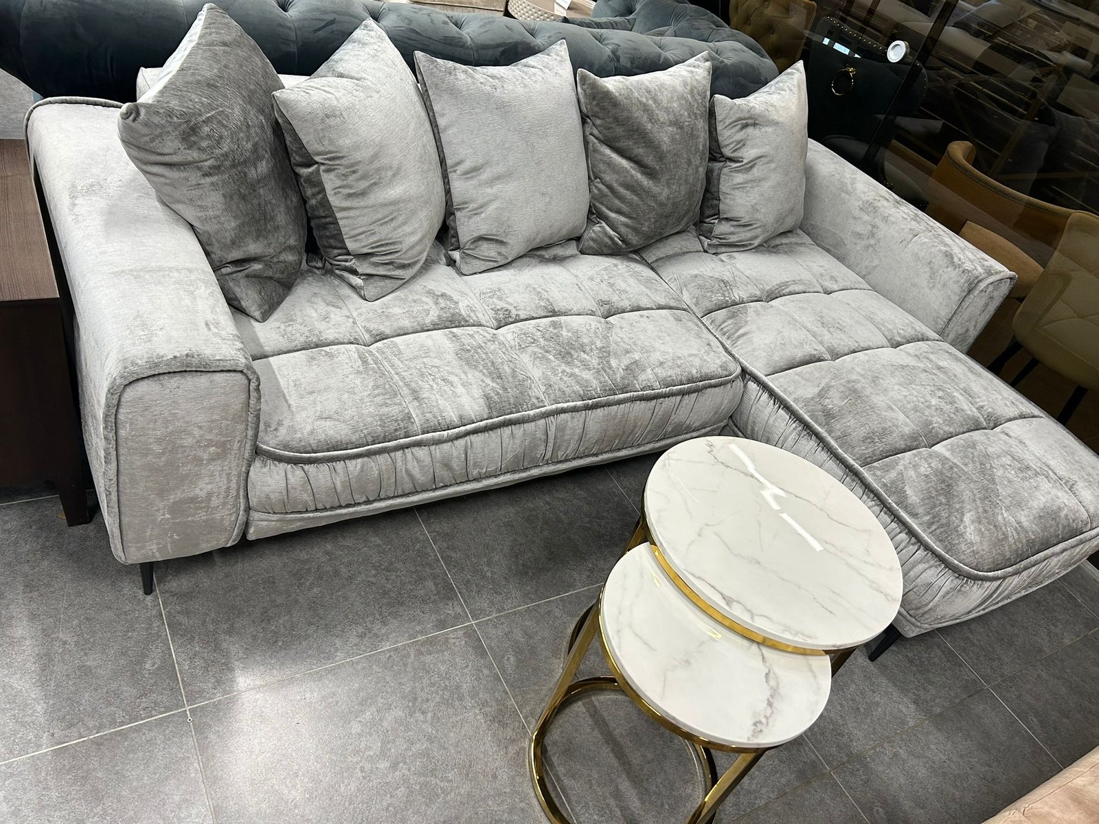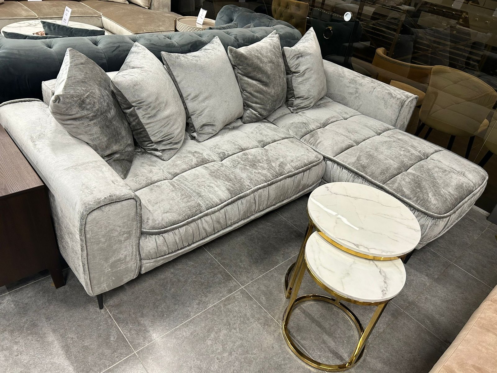 MARKIZ minkštas kampas – tai modernus baldas šiuolaikiškai svetainei. Jo patogumas sužavės tave, o komforto pojūtis užtikrins kokybišką poilsį. Praktiškumo šiam minkštam kampui priduoda veliūrinis audinys, lengvumo suteikia juodos spalvos kojelės.