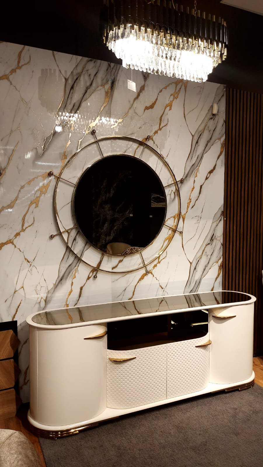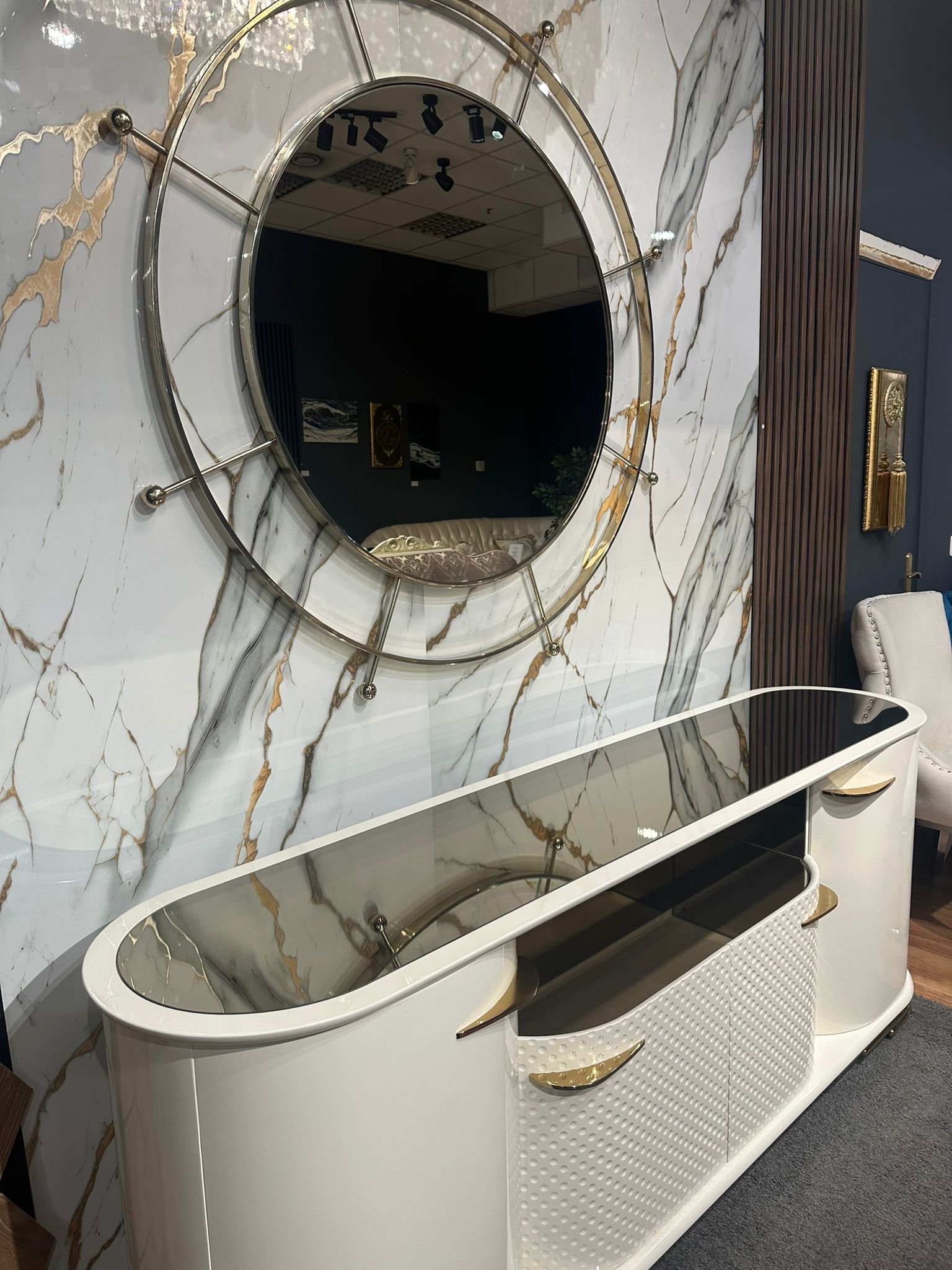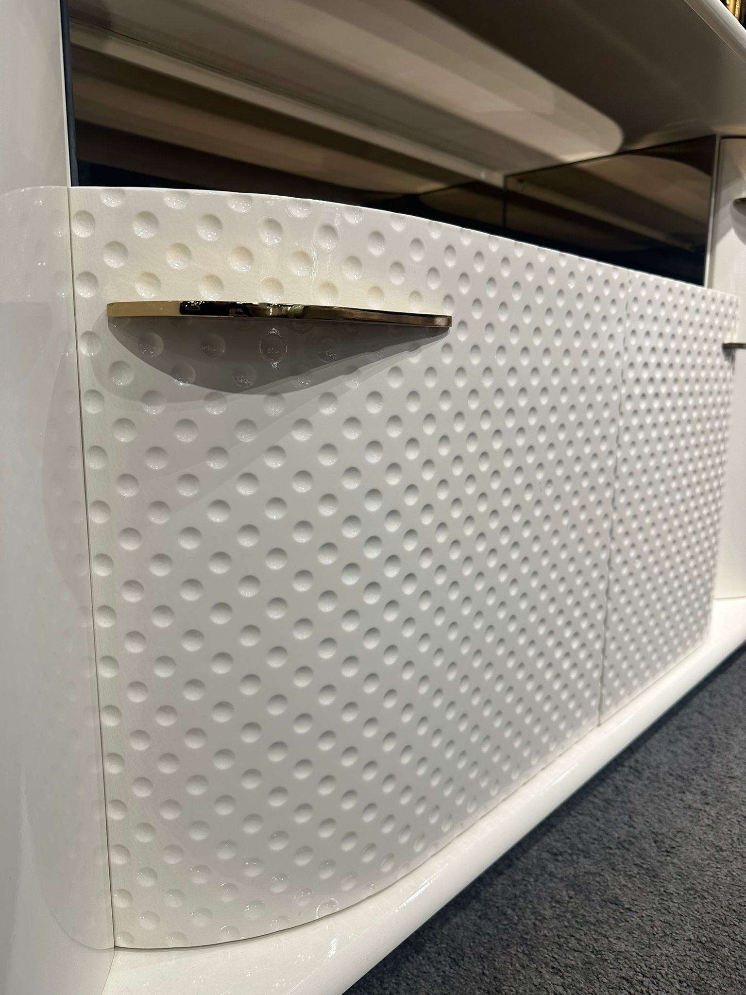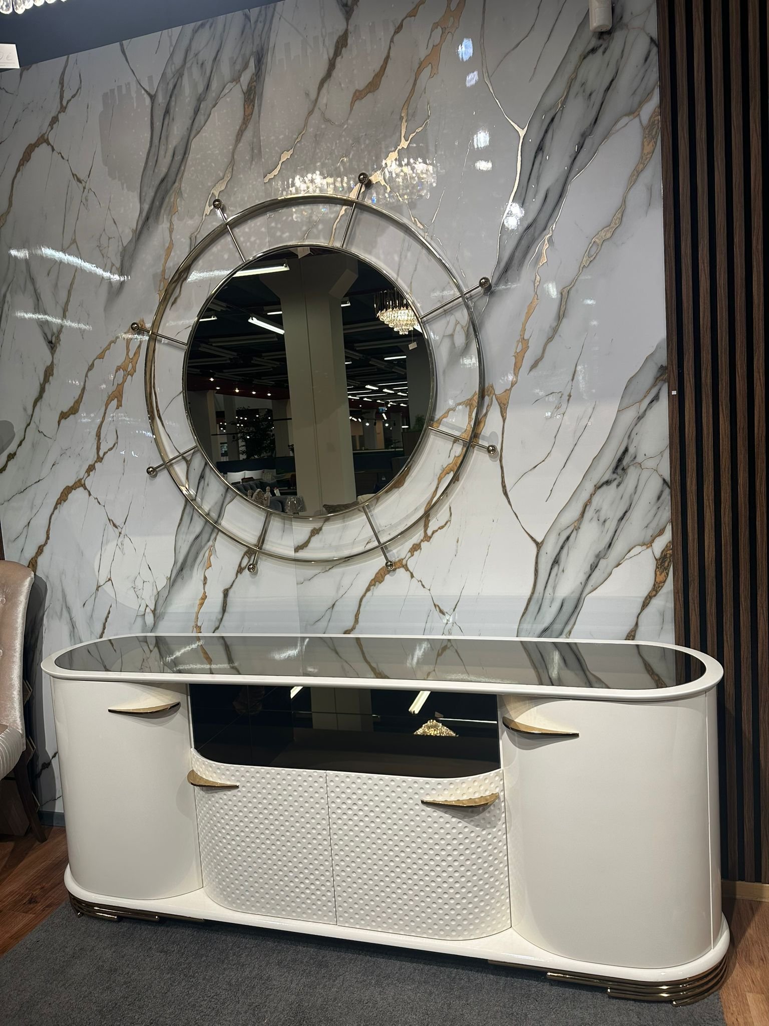 PARIS konsolė yra unikalaus dizaino ir moderni, todėl lengvai pritaikoma įvairiuose interjeruose. Jos elegantiškas stilius ir prabangos pojūtis suteiks jūsų svetainei ypatingos išskirtinumo. Konsolės matmenys 207(W) x 48(D) x 80(H) cm leidžia ją patogiai įkomponuoti net ir mažesnėse erdvėse.