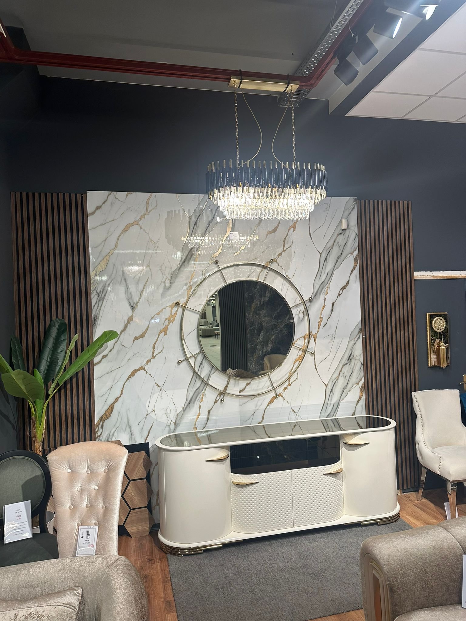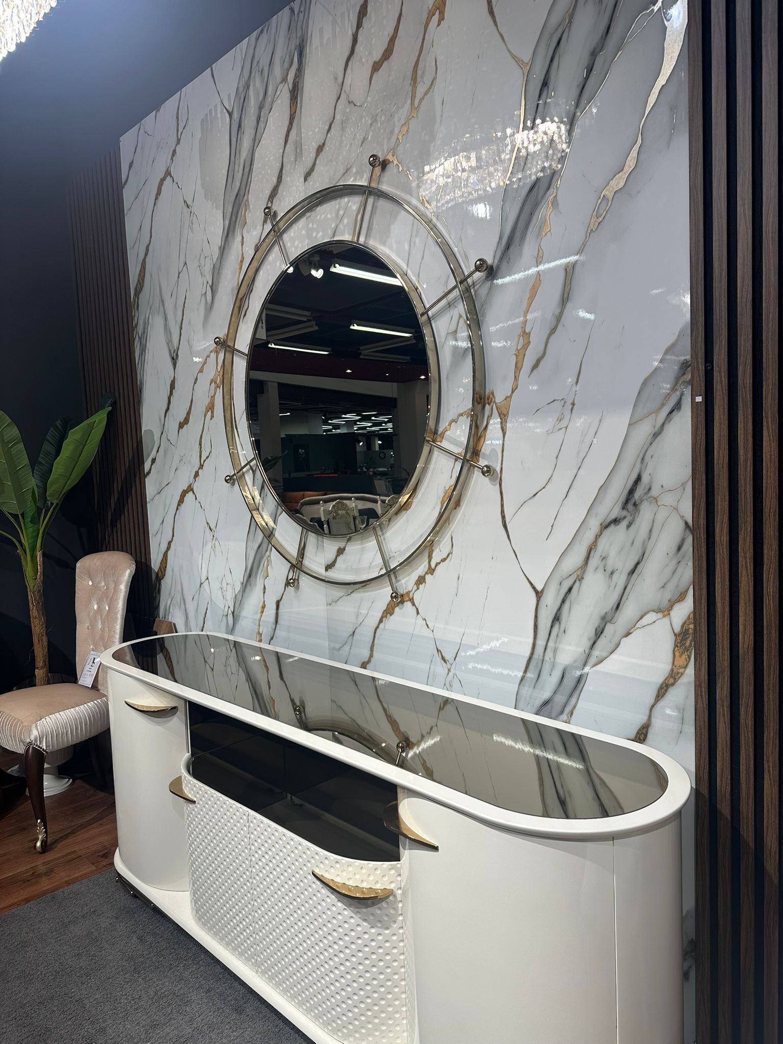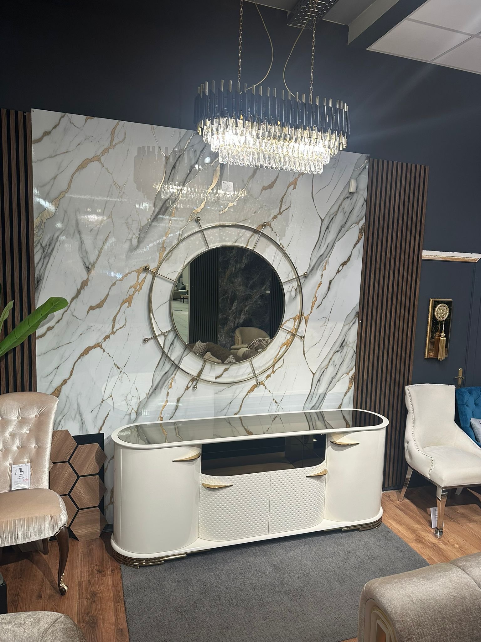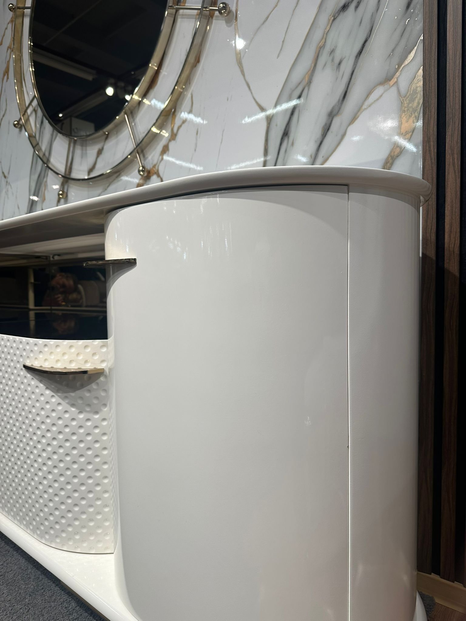 PARIS konsolė yra unikalaus dizaino ir moderni, todėl lengvai pritaikoma įvairiuose interjeruose. Jos elegantiškas stilius ir prabangos pojūtis suteiks jūsų svetainei ypatingos išskirtinumo. Konsolės matmenys 207(W) x 48(D) x 80(H) cm leidžia ją patogiai įkomponuoti net ir mažesnėse erdvėse.