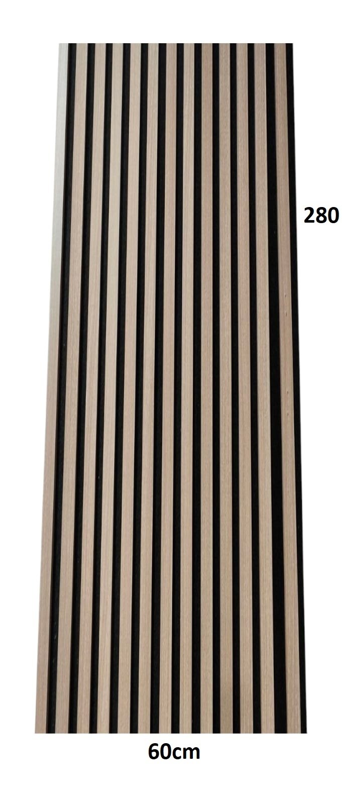 Dekoratyvinė akustinė plokštė SONOMA (280×60 cm) – natūralaus ąžuolo atspalvis, kuris šviesina ir gerina patalpos akustiką.