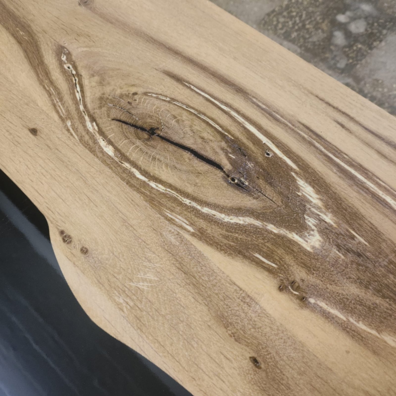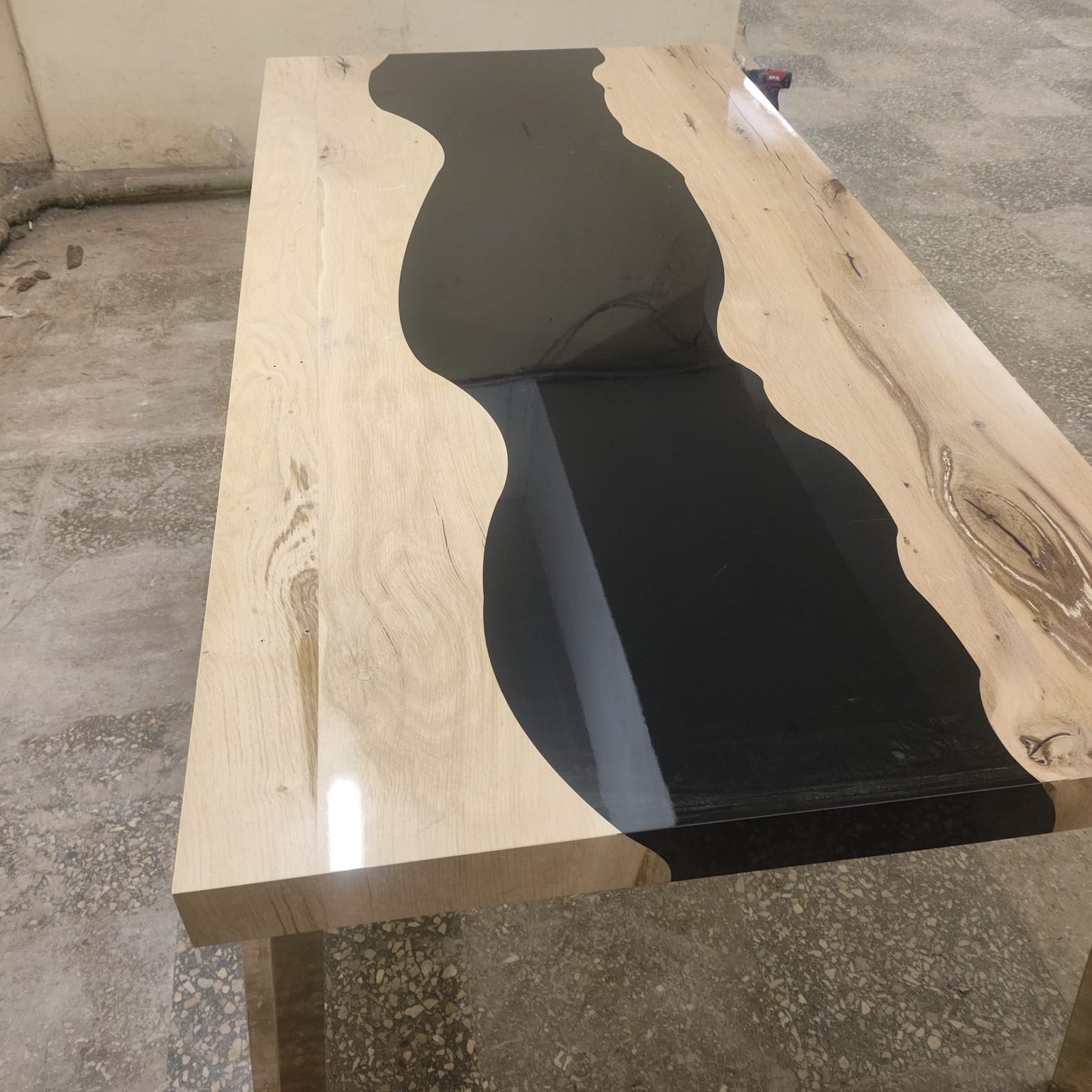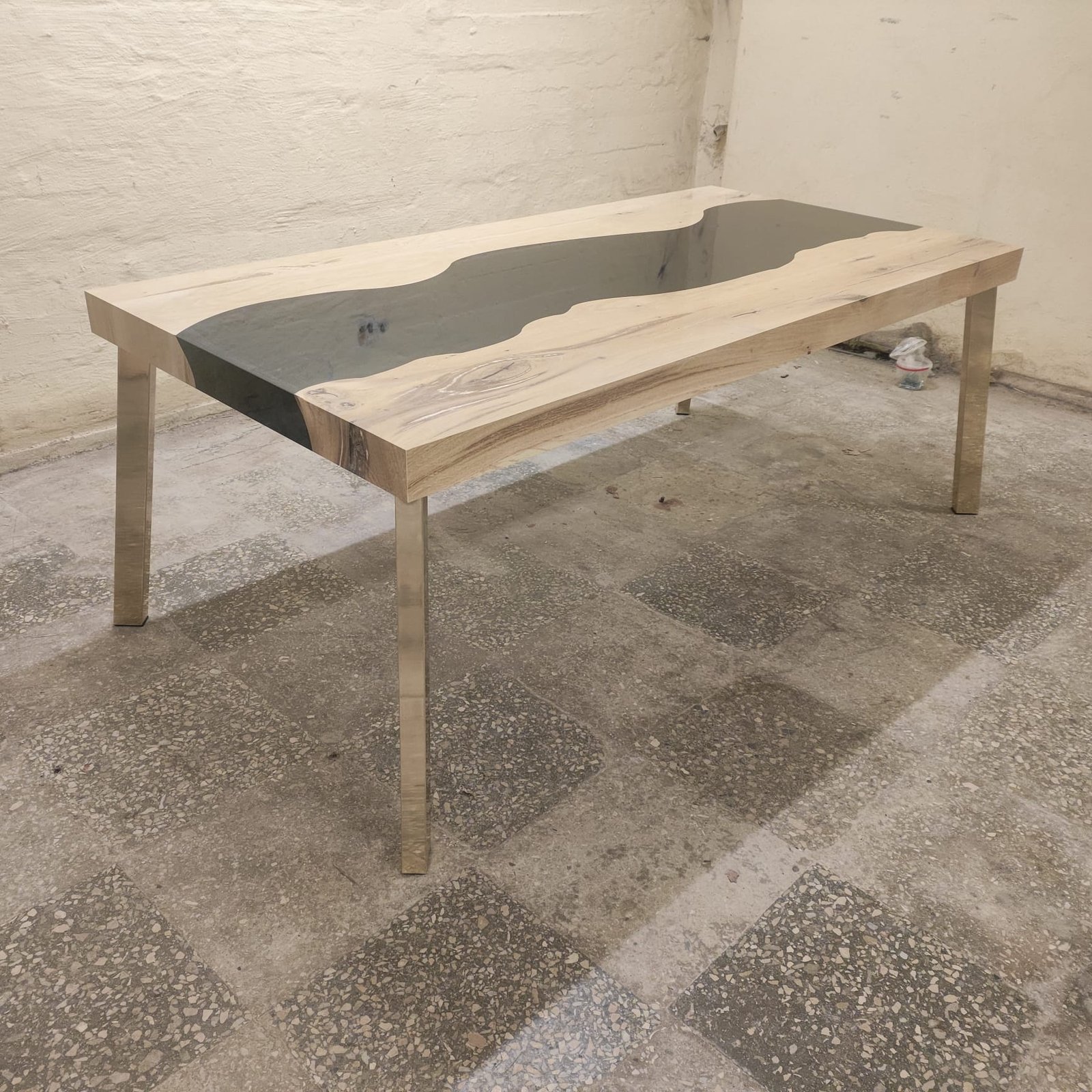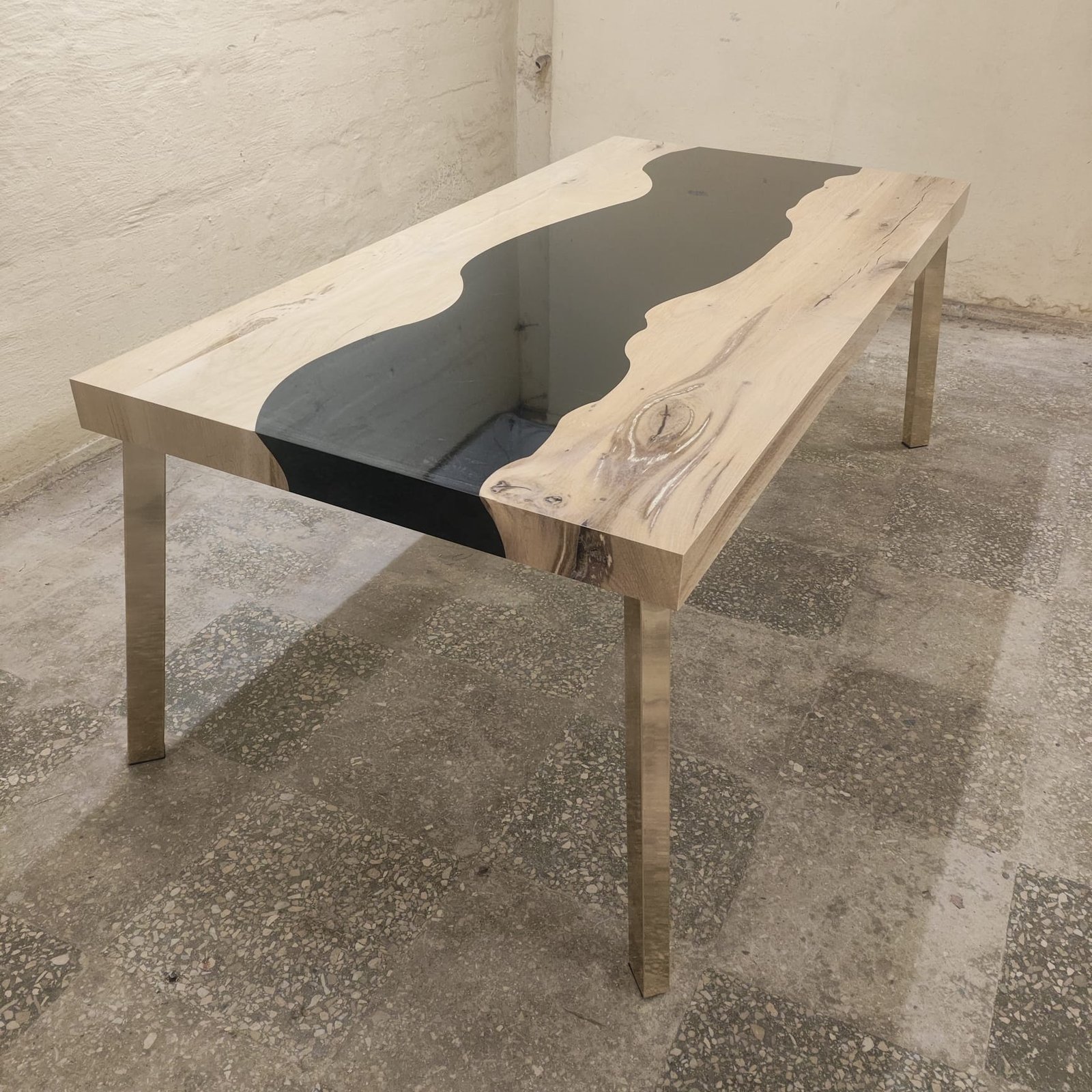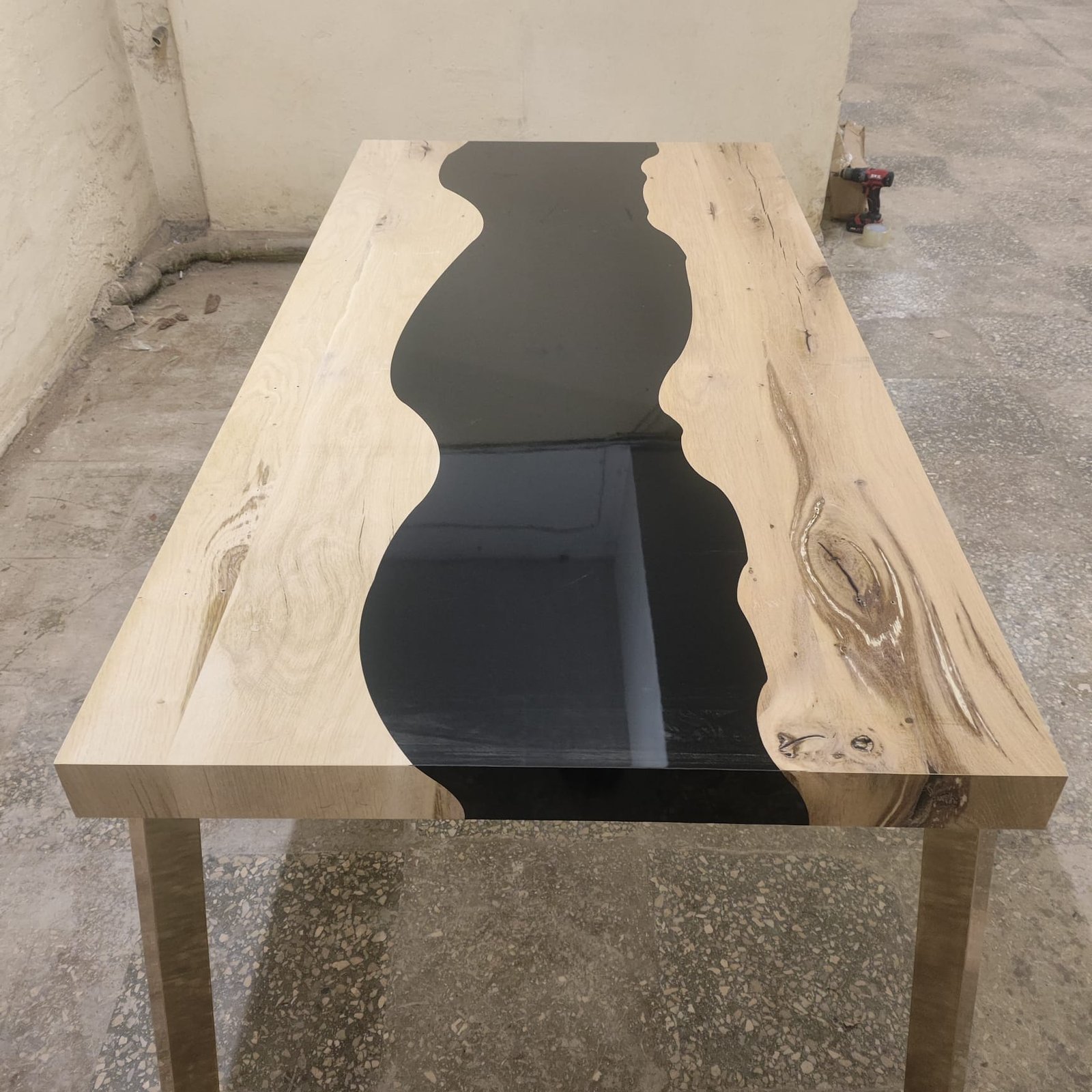 Sultan – tai stalas, kuris atrodo kaip meno kūrinys. Natūralaus ąžuolo masyvo plokštės susilieja su gilia juodos epoksidinės dervos „upe“, kuriančia unikalų, nepakartojamą raštą kiekviename egzemplioriuje. Tai baldas, kuris ne tik tarnauja, bet ir pasakoja istoriją – apie medžio charakterį, laiką ir meistrystę.